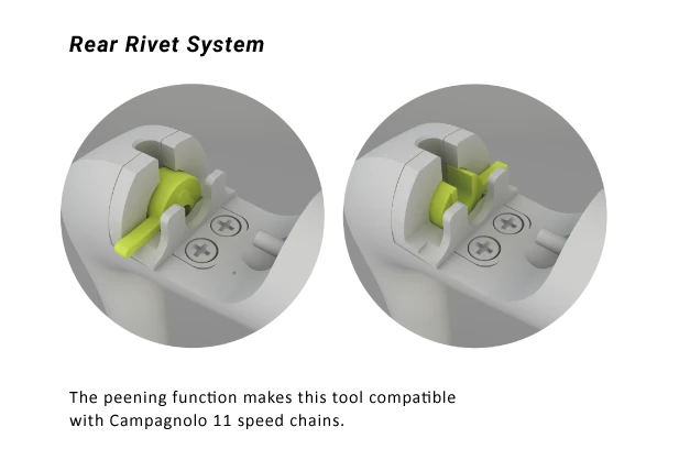 I tillegg kan den også brukes til å sette inn pind i 11 speed Campagnolo kjeder.