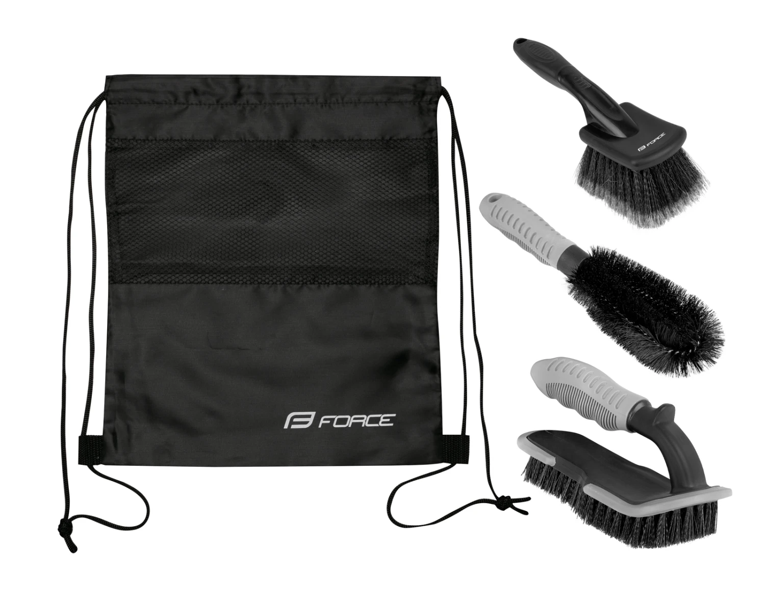 3 pakning børstesett fra Force til vanlig rengjøring av sykkelen.