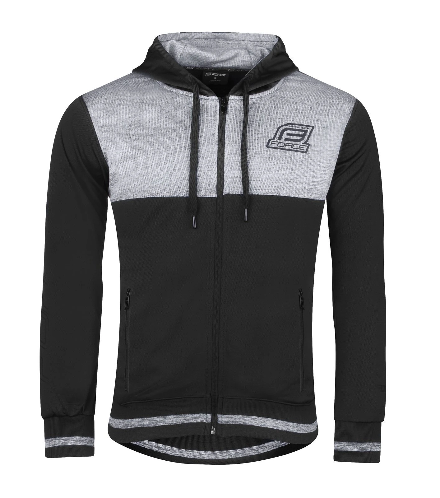 Trøyen har 2 lommer med glidlås i fremsiden.